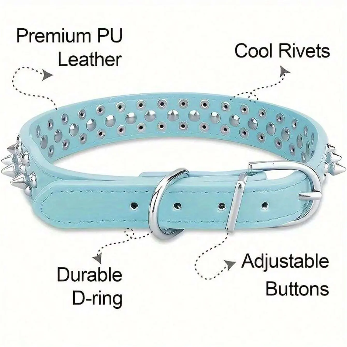 This adjustable rivet dog collar is crafted from durable PU leather and reinforced with rust-resistant metal rivets for long-lasting use. Designed to protect your dog’s neck and resist biting or tearing, it offers both comfort and toughness. The smooth inner lining prevents irritation, while the adjustable buckle ensures a perfect fit for small, medium, and large dogs. Ideal for everyday wear, training, or walking, this stylish collar combines safety, durability, and fashion for your pet.